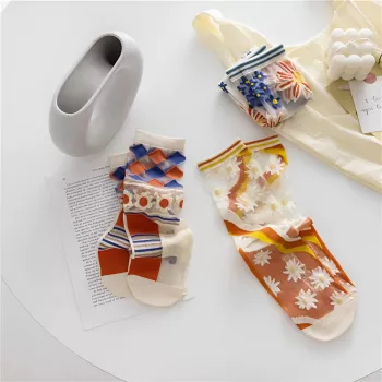 Harajuku Floral Crystal Silk Socks – Retro Transparent Summer Style